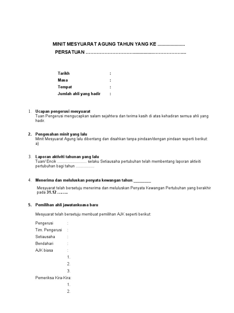 Minit Mesyuarat Agung Kelab/Persatuan/Unit Uniform/Permainan PDF
