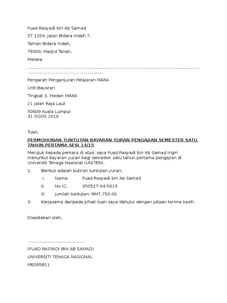 Format Surat Rasmi Dan Contoh Surat Rasmi Aduan Rayuan Permohonan