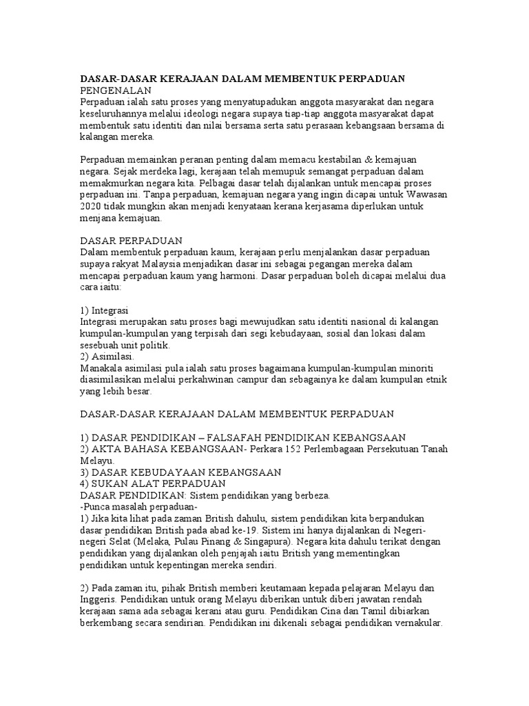 Dasar Kerajaan Membentuk Perpaduan PDF
