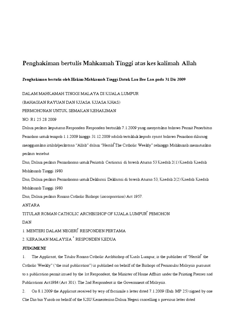 Penghakiman Bertulis Mahkamah Tinggi Atas Kes Kalimah PDF