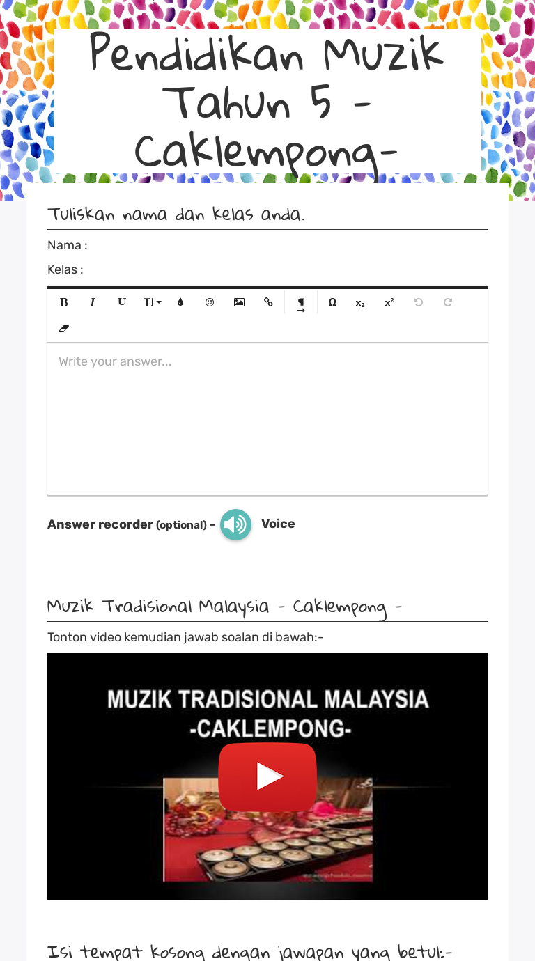 Pendidikan Muzik Tahun 5 -Caklempong- Interactive Worksheet by